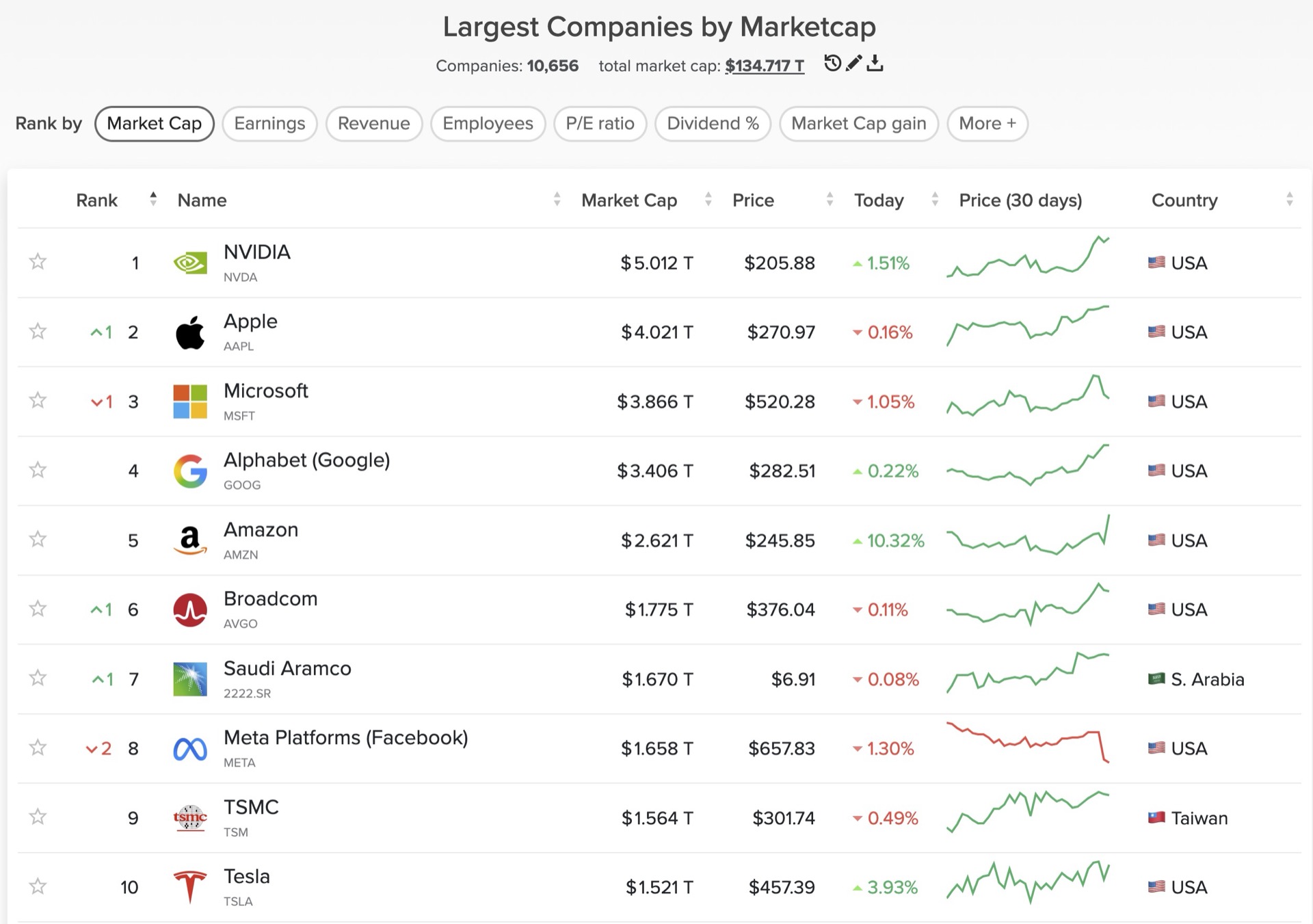 Cinco billones (trillions americanos, ya sabéis, allí se usa escala corta) es una absoluta burrada. En realidad ya lo eran cuatro billones, y también tres. Son números difíciles de asimilar porque es demasiado dinero. De hecho, tras la noticia de que NVIDIA había alcanzado esa capitalización bursátil aparecieron las comparaciones para poner esa cifra en perspectiva.