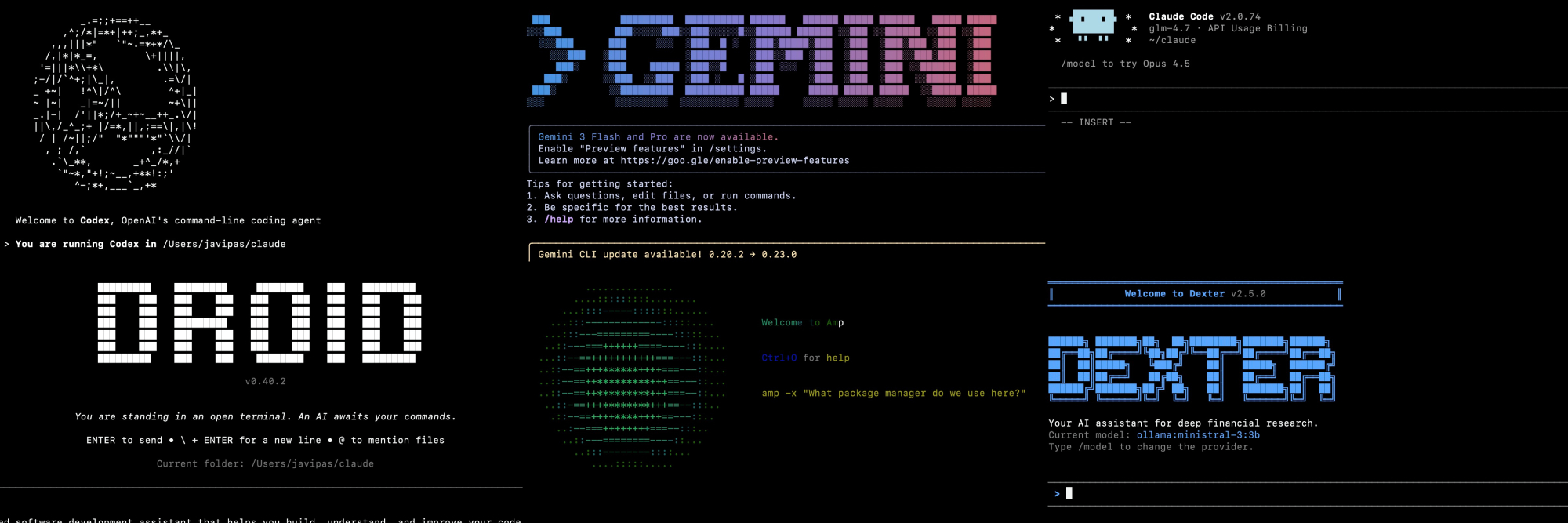 La segunda, llevo tiempo pensando que qué curioso esa moda que han seguido todos los agentes de programación en modo intérprete de comandos (CLI). Todos suelen mostrar algún tipo de logotipo o texto en modo ASCII Art, y la verdad es que es una forma simpática de dar la bienvenida a los usuarios.
