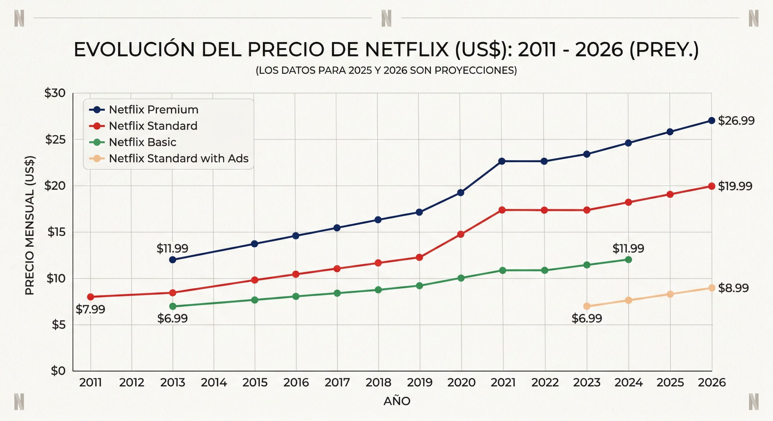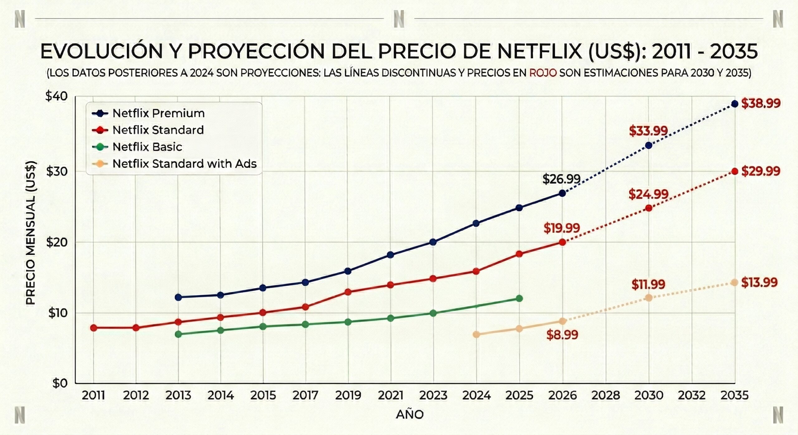 Y no parece que vayan a parar de hacerlo. De hecho, he hecho esa pequeña proyección con Gemini y Nano Banana 2 para asustaros un poco más. Con bastante probabilidad en 2030 y 2035 estaréis pagando (los que paguéis, a mí no me miréis) bastante más que ahora: