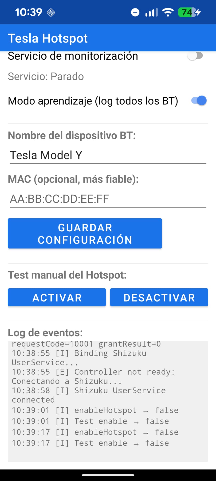 ¡Ole! ¡Funcionó! Qué chulada, la verdad. Y todo en aproximadamente una mañana. Me subí para pulir alguna cosa (lo de configurar la MAC para que solo se conecte mi Tesla y no otro) volví a salir y probar la app dos o tres veces más, y aunque esa parte aún no pirula del todo, me dio igual, porque la funcionalidad básica iba a la perfección.